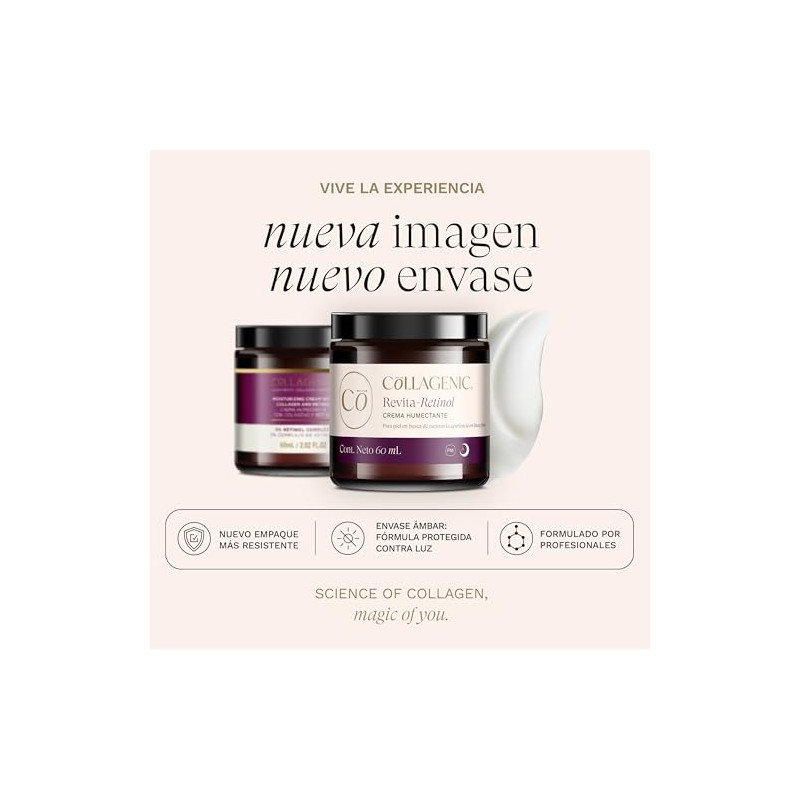 Collagenic | Crema Facial Antiarrugas con Retinol y Colágeno Hidrolizado | 2 en 1: Hidratación Profunda + Reafirmante | Mejora la Firmeza y Textura de la Piel, Hidrata, Suaviza e Ilumina | Crema de Noche| 60 ml