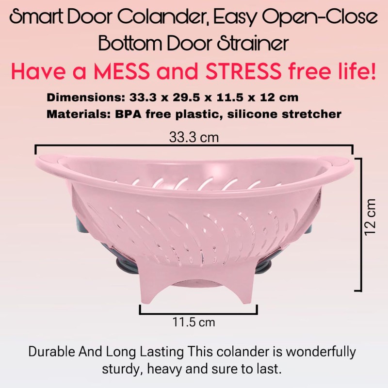 - Multifunctional: Don’t use your strainer upside down anymore, no more mess or extra work in kitchen. The colander plastic with silicone stretcher at the bottom will help water drain efficiently allows for super-fast drainage. Plastic sieves make healthy and easier life. It's perfect for washing and drying lettuce, spinach, potatoes, spaghetti, green beans, kale and other leafy greens, as well as broccoli, carrots, salad leafs, fruits and other vegetables.