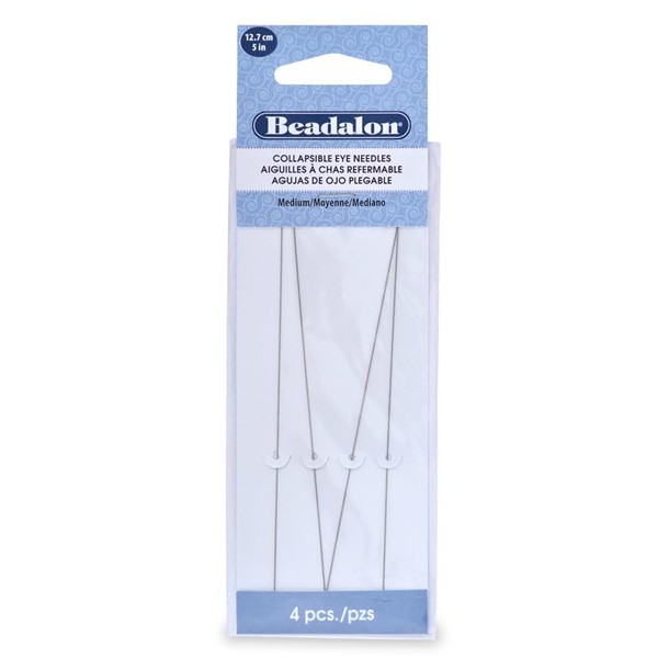 Collapsible Eye 5" Long Flexible Beading Needles Medium Size (Package of 4)