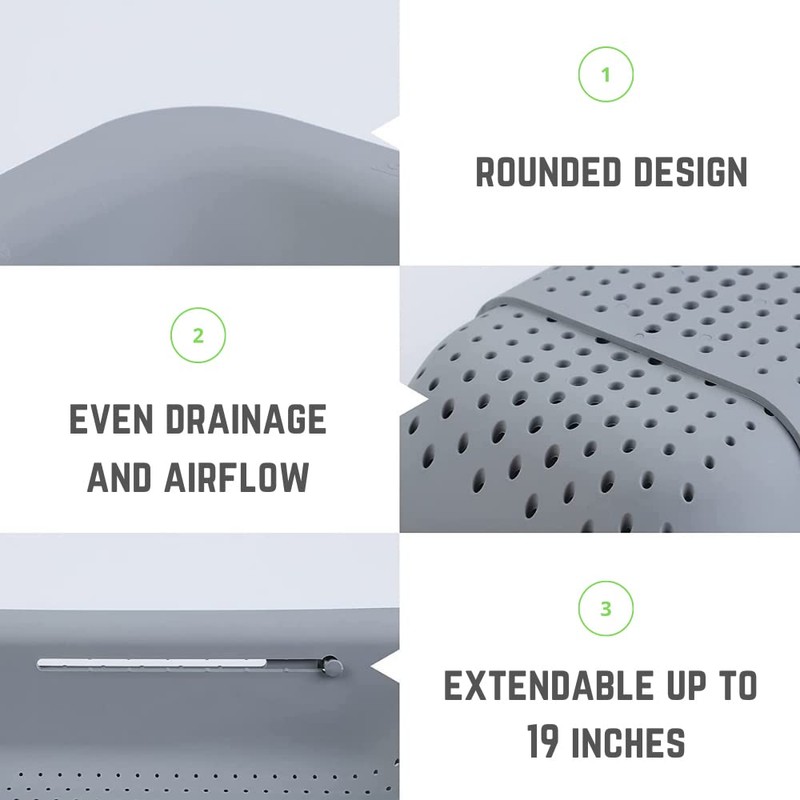 - EXPANDABLE DESIGN: Adjustable colander extends from 36.3 cm to 49.3 cm in length to fit various sink sizes, with retractable handles for easy storage