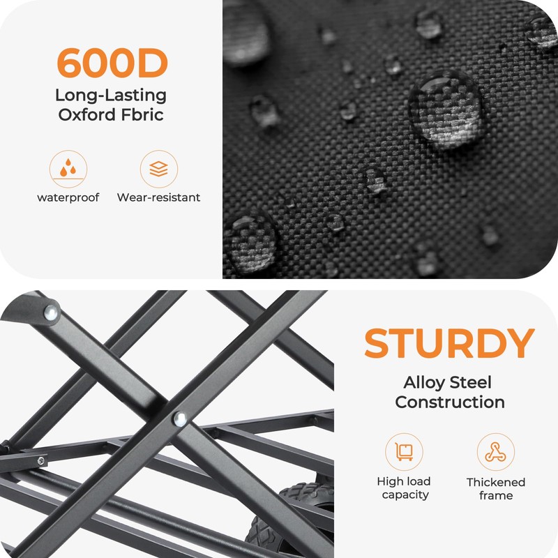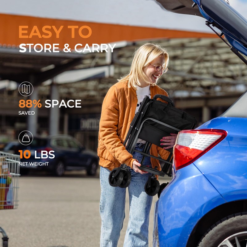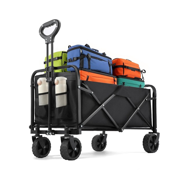 Collapsible Wagon 220 lbs, Heavy Duty Wagon Carts Foldable, Portable Wagons for Groceries, Beach Cart with All-Terrain Wheels & Drink Holders, Utility Wagon for Shopping, Sports, Camping, Black