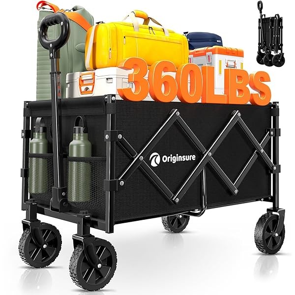 Collapsible Wagon Cart Foldable - Portable Heavy Duty Folding Beach Wagons with Wheels - Outdoor Utility Carts for Groceries, Shopping, Camping, Sports, Garden with Large Capacity - Black