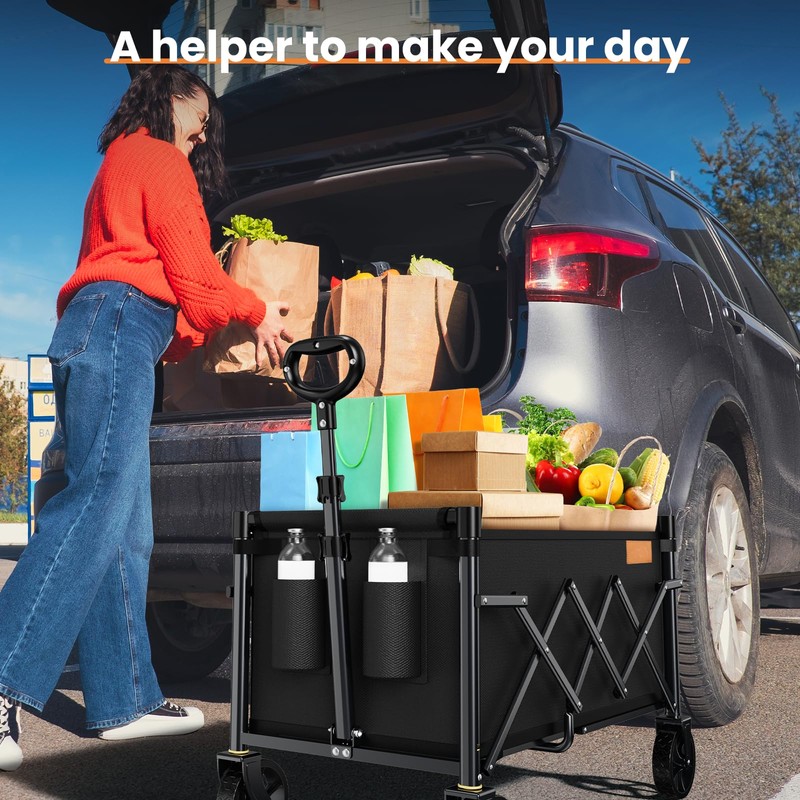 Uyittour Collapsible Wagon Cart Foldable with 220lbs Weight Capacity, Lightweight Portable Folding Utility Grocery Shopping Cart with Wheels for Camping Sports Beach and Shopping