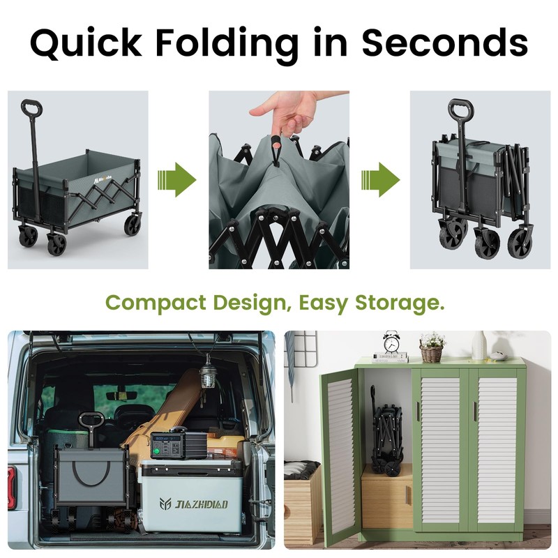 - Versatile Use: Whether for camping, beach trips, family picnics, gardening, or grocery shopping, this collapsible wagon with wheels meets all your needs. The multifunctional foldable cart with wheels is a perfect choice for families and outdoor enthusiasts.