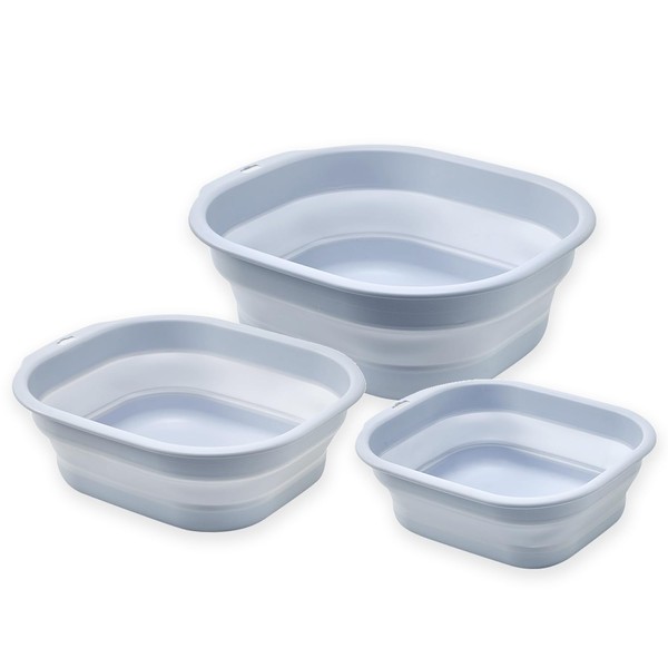 Collapsible Wash Basin Set of 3, Foldable Large Medium Small Wash Basins, Portable Plastic Basins for Laundry, Bottles, Travel, Camping (Blue Gray)