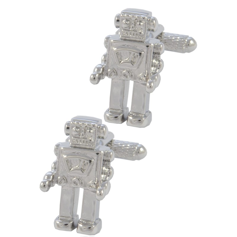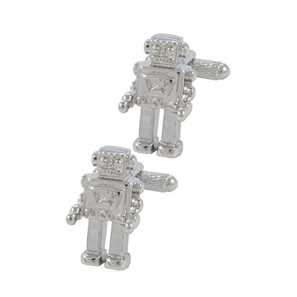 COLLAR AND CUFFS LONDON - Luxury Cufflinks for Men with PRESENTATION GIFT BOX - Robot - Solid Brass - Modern Technology Mechanics Engineering - Silver Colour