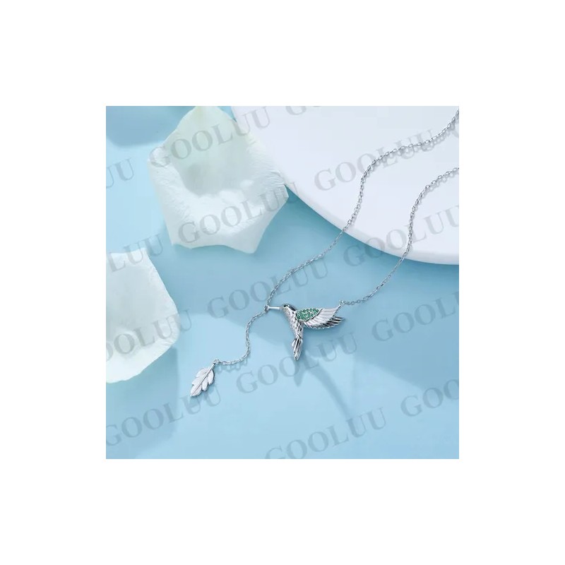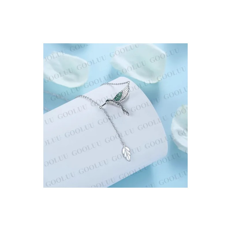 Collar Con Dije De Colibrí De 925 Plata Para Mujer Color Verde