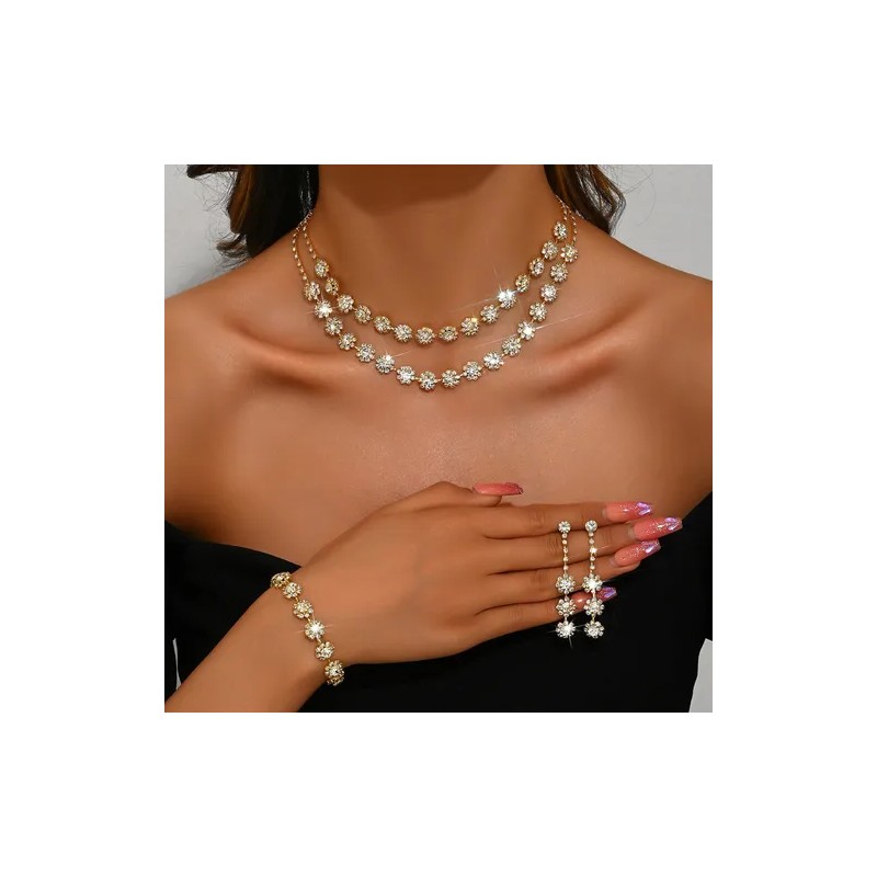 Collar De Novia Pulsera Pendientes Conjunto De Joyas Regalo Dorado