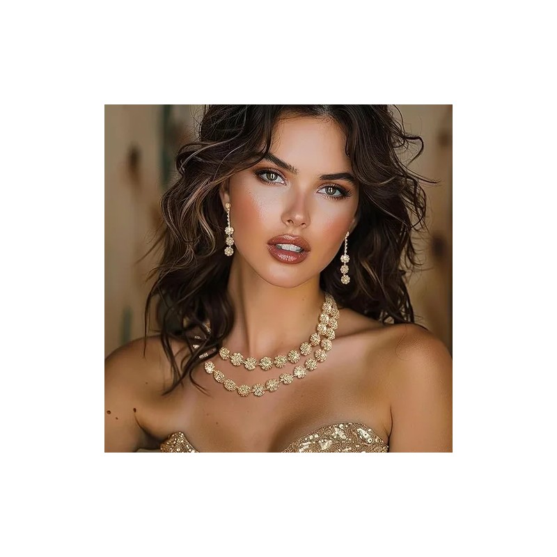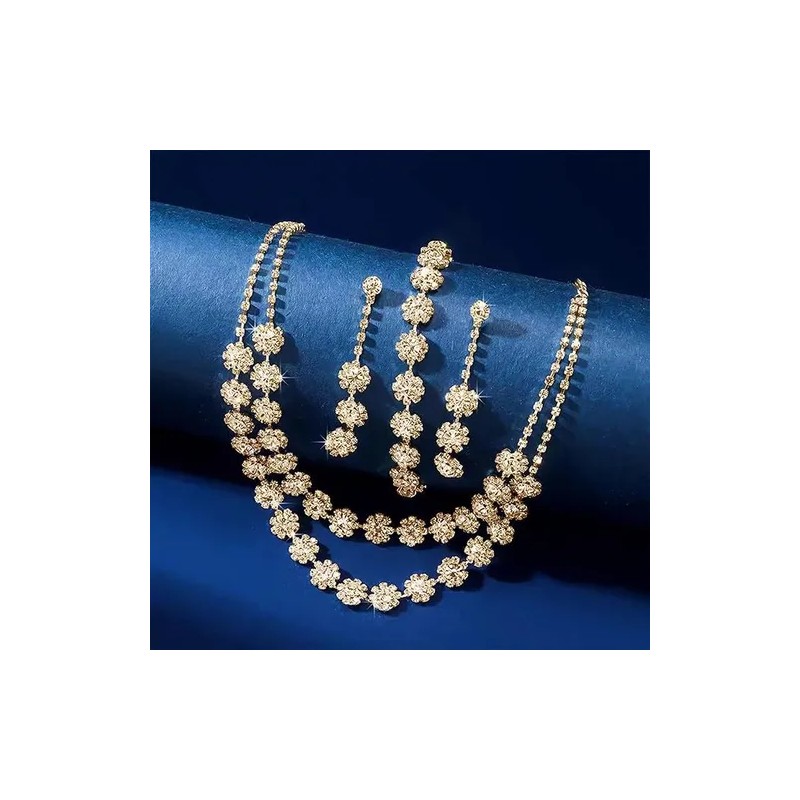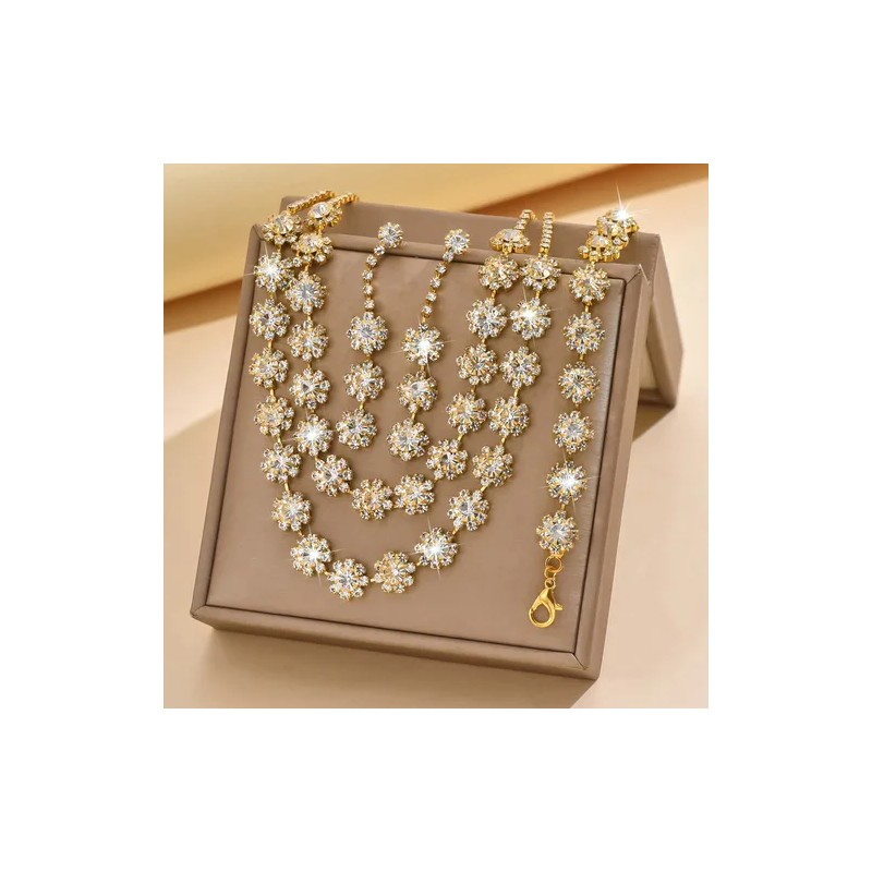 Collar De Novia Pulsera Pendientes Conjunto De Joyas Regalo Dorado