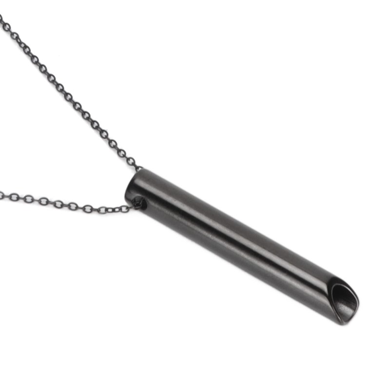 Collar de Respiración Consciente de Acero Inoxidable que Reduce el Estrés, Collar Portátil con Silbato de Ansiedad (Negro)