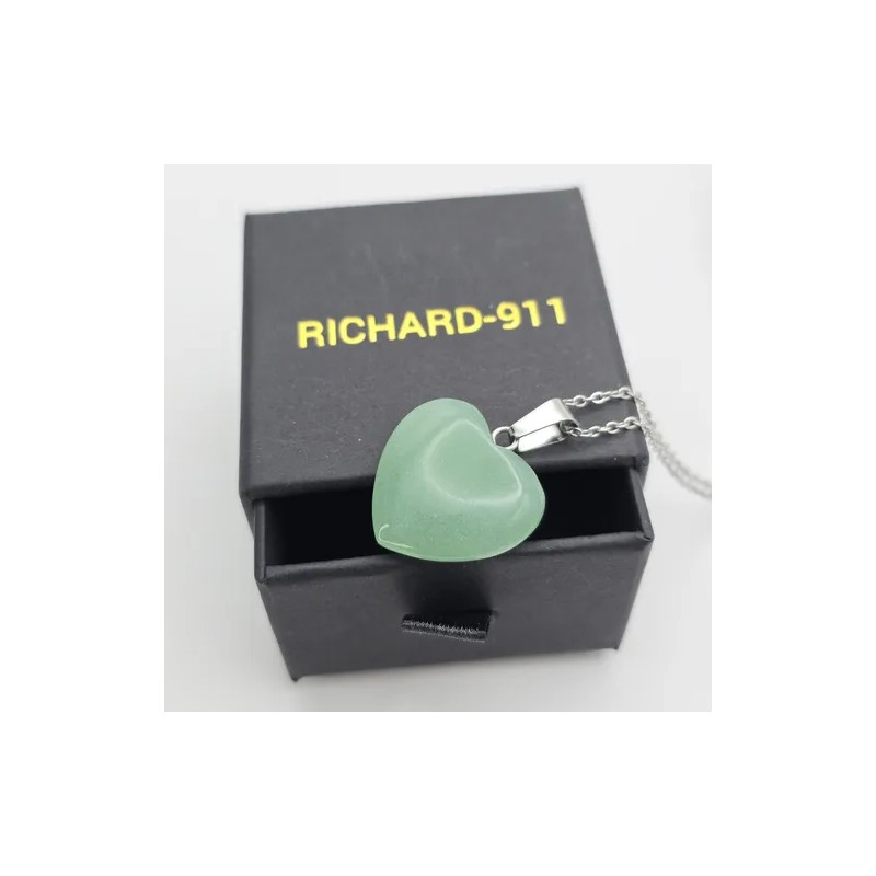 Collar Dije Corazón Cuarzo Verde Cadena Acero Inoxidable Amo Verde