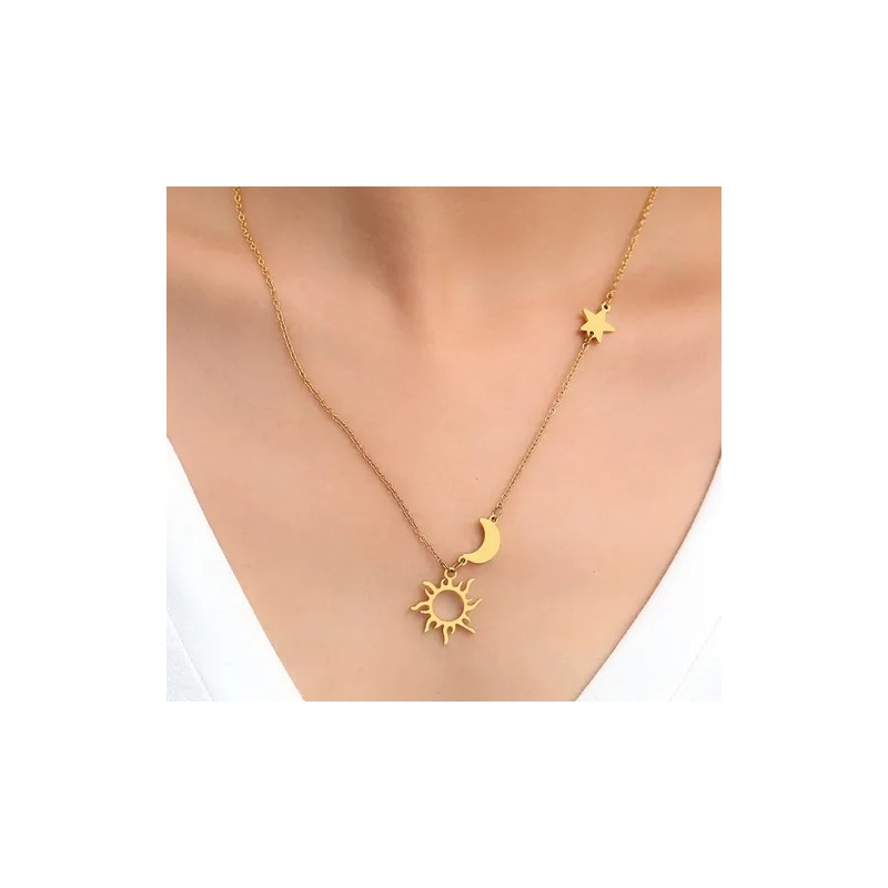 Collar Dije Sol Luna Estrella Calidad Acero Inoxidable