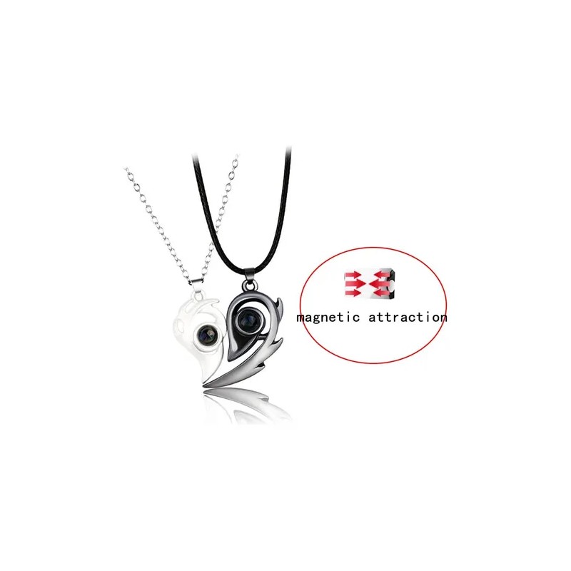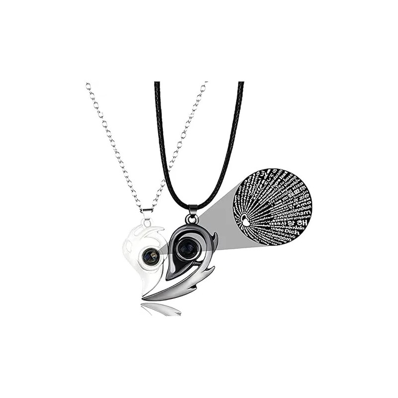 Collar de proyección: collar de pareja, con diseño de proyección, el colgante en forma de corazón de la pareja cerca de los ojos o la cámara del teléfono móvil puede revelar los secretos ocultos. Si desea proyectar texto, sostenga la piedra de proyección cerca de la linterna de su teléfono celular por la noche.