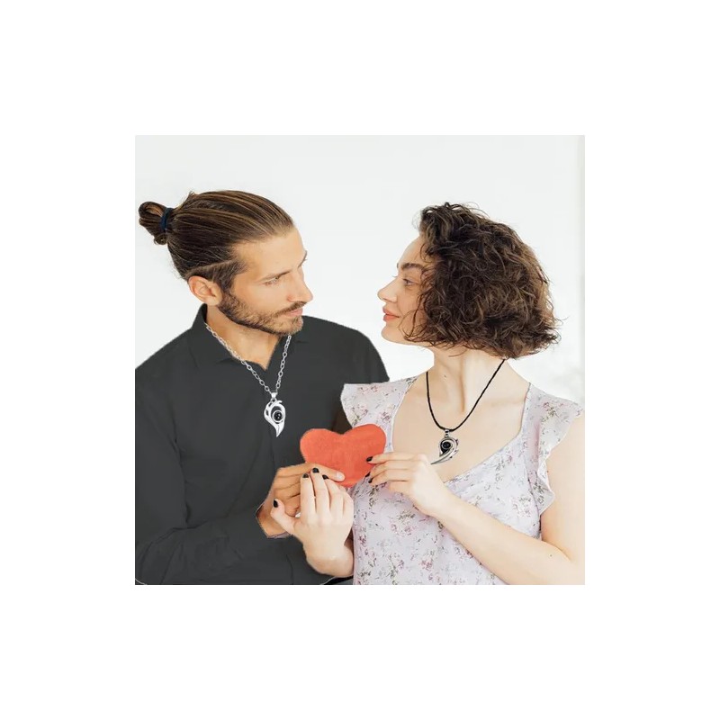 Collar de Medio Corazón para Parejas: Un corazón completo se compone de dos mitades, representando el vínculo entre el corazón y el alma. El colgante puede recordarte que te amo por siempre. Estos colgantes de collar para parejas están grabados con Te amo en 100 idiomas diferentes. Un collar favorito para parejas.