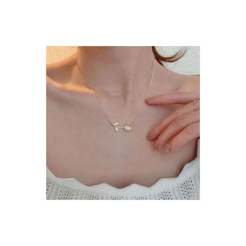 Tamaño: 9,5 x 24 mm; Peso: 2,1 g. El collar Tulip agrega muchos elementos pop, como calcedonia blanca y circonita cúbica, y luce tan brillante y tan elegante. Adecuado para cualquier ocasión, fácil de combinar con cualquier ropa, un bonito adorno que te gustaría usar todos los días.