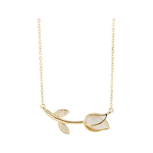 Tanto el colgante de tulipán como la cadena están hechos de plata de ley 925 maciza, decorados con calcedonia blanca de alta calidad y circonita cúbica, hipoalergénicos y sin níquel, brindan una excelente experiencia sin decoloración ni alergias, adecuados para uso diario.