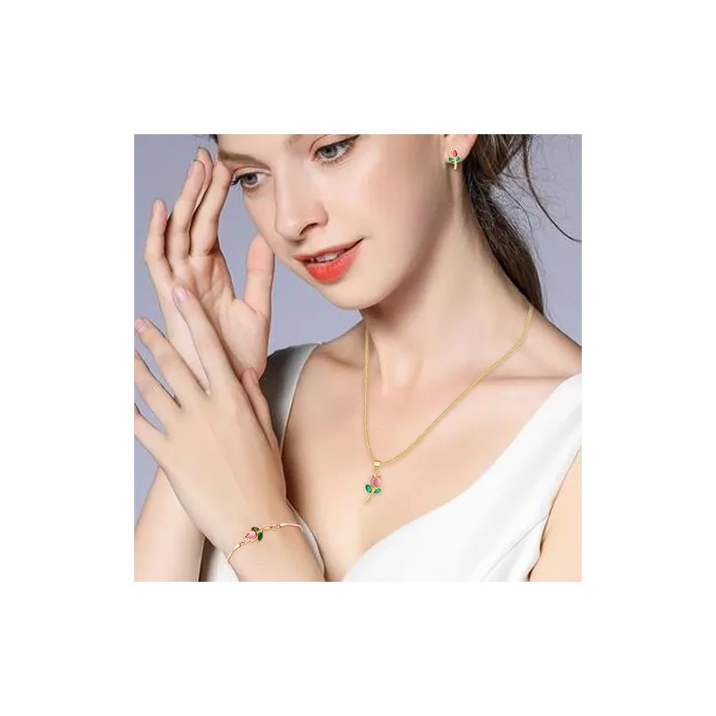 Collar Tulipán Con Cristal Dijes Pulsera Aretes Joyería Lujo