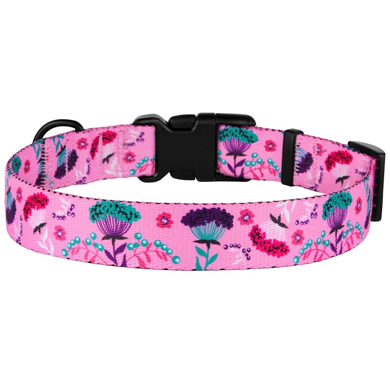 CollarDirect Floral Dog Collar Nylon Pattern Flower Print Adjustable Pet Collars for Dogs Small Medium Large Puppy (Neck Fit 12"-16", Pink)