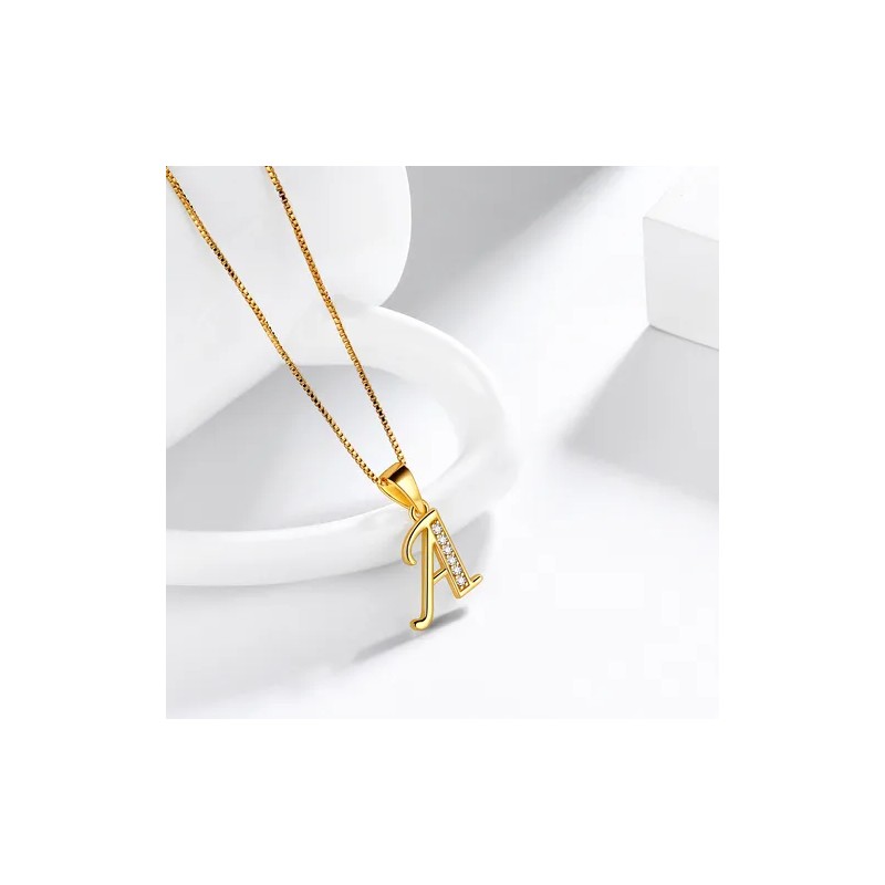 Collares Mujer Inicial Letras Baño Oro 18k Zirconias Color A