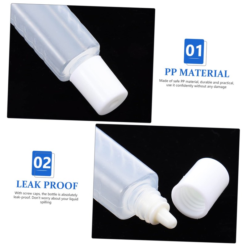 mini containers Don't worry about the liquid leaking out of the ' cases.ear dropper bottle The bottles are tightly sealed to prevent leakage. Liquid Container with Screw Cap Come and take them home.essential oil holder This is care solution bottle, which is made of high-class plastic material, and can be for a time