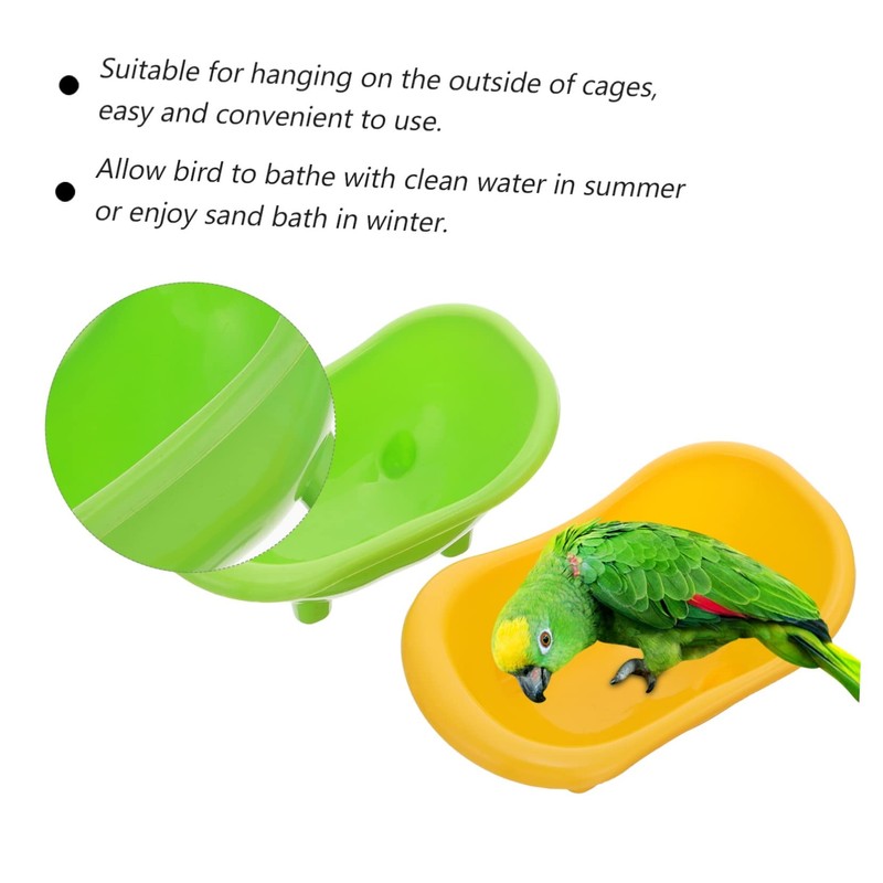 Bird Shower Basin It also can be a food bath tub for your bird.Birds Bat Tub Space-saving design, practical and durable.Parrot Shower Tub Durable construction lets you watch your pet playing inside.Parrot Bathing Tub Appropriate size, can be used in most of the cages.Food Feeder This is a parrot bathtub