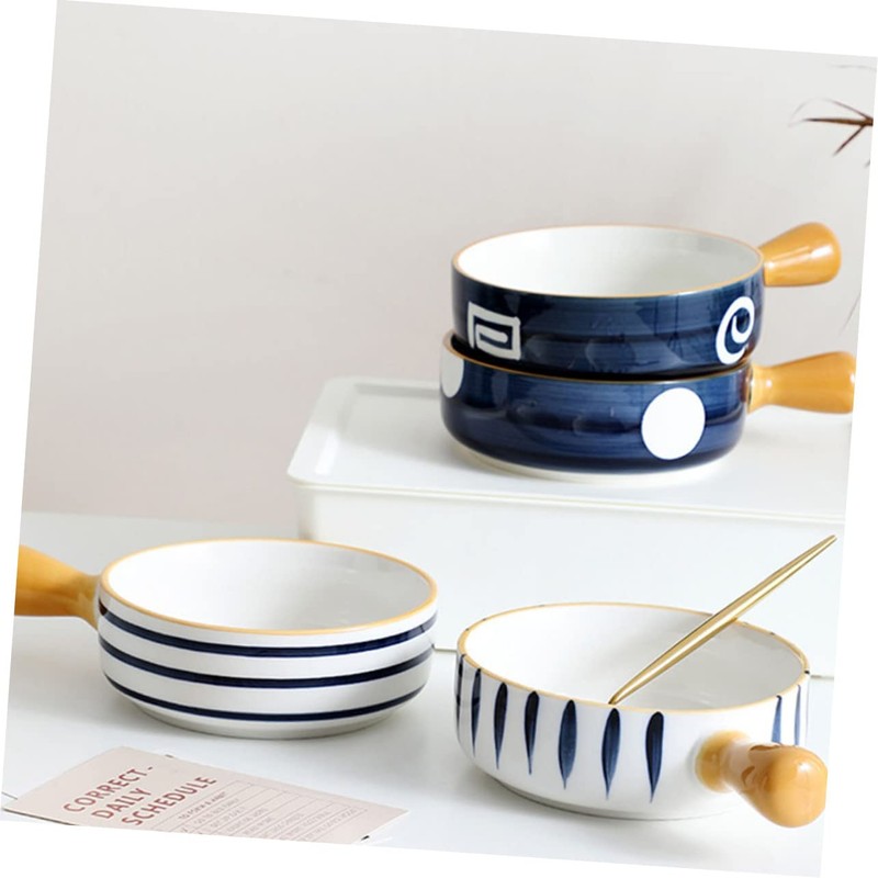 Bowl with Handle Suitable for soup, rice, egg custard, vegetable, the for home.pottery soup bowl This is a baking ceramic bowl, which is made of high class food grade ceramic material which has a good stability.salad dish plate A set of good your friends