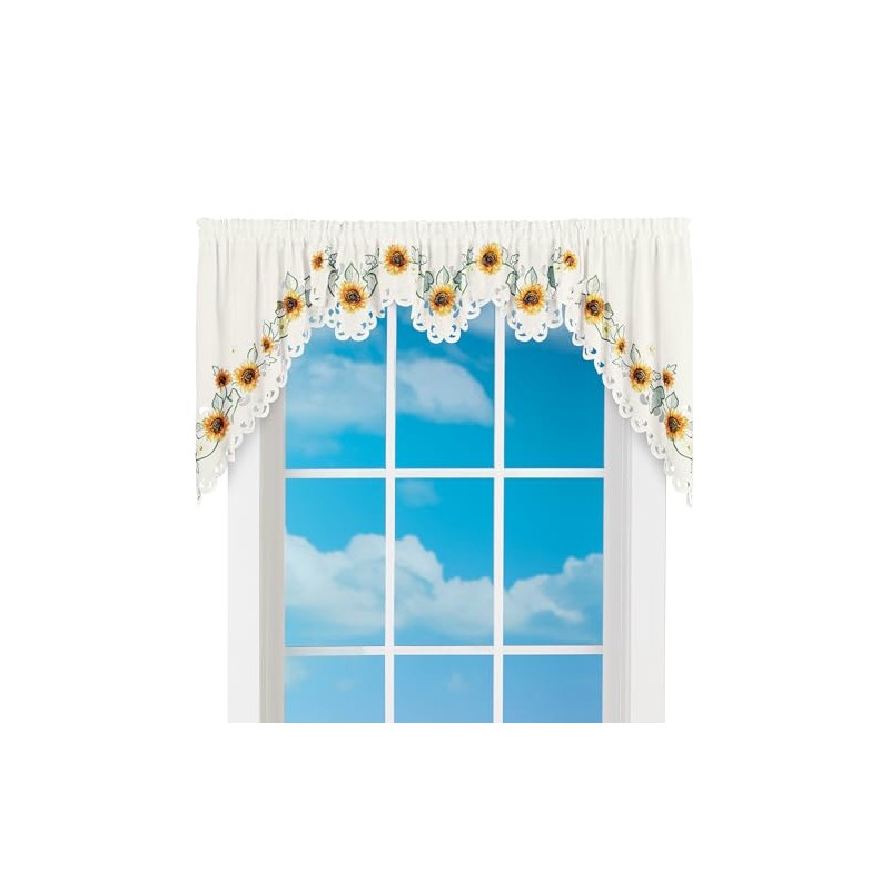 Collections Etc Exquisite Embroidered Sunflower Rod Pocket Curtains with Scalloped Edges