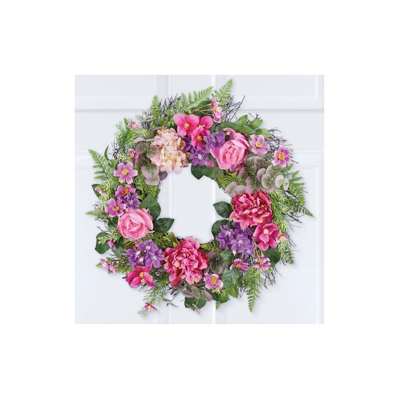 Collections Etc Pink and Purple Floral Spring Hanging Wreath