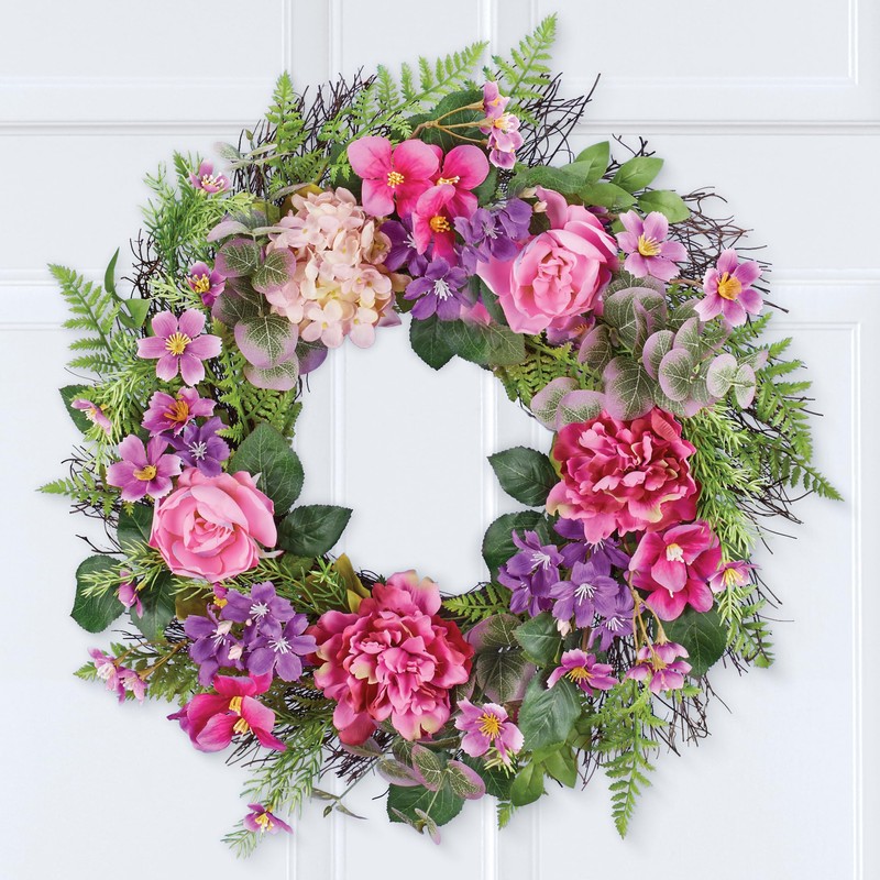 Pink and Purple Floral Spring Hanging Wreath
