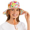 This wide brim hat is heat and water-resistant to protect you from the sun while keeping you planting, weeding and harvesting in style. This gardening hat features a wide brim, breathable mesh side panels, side snaps to wear brim up or down, a ponytail opening for long hair, adjustable drawstring to secure hat under your chin, and mesh lining for comfort. Hand wash. Polyester; imported. One size fits most. Specify: Pink Flowers, Succulents, Lemons or Peaches.