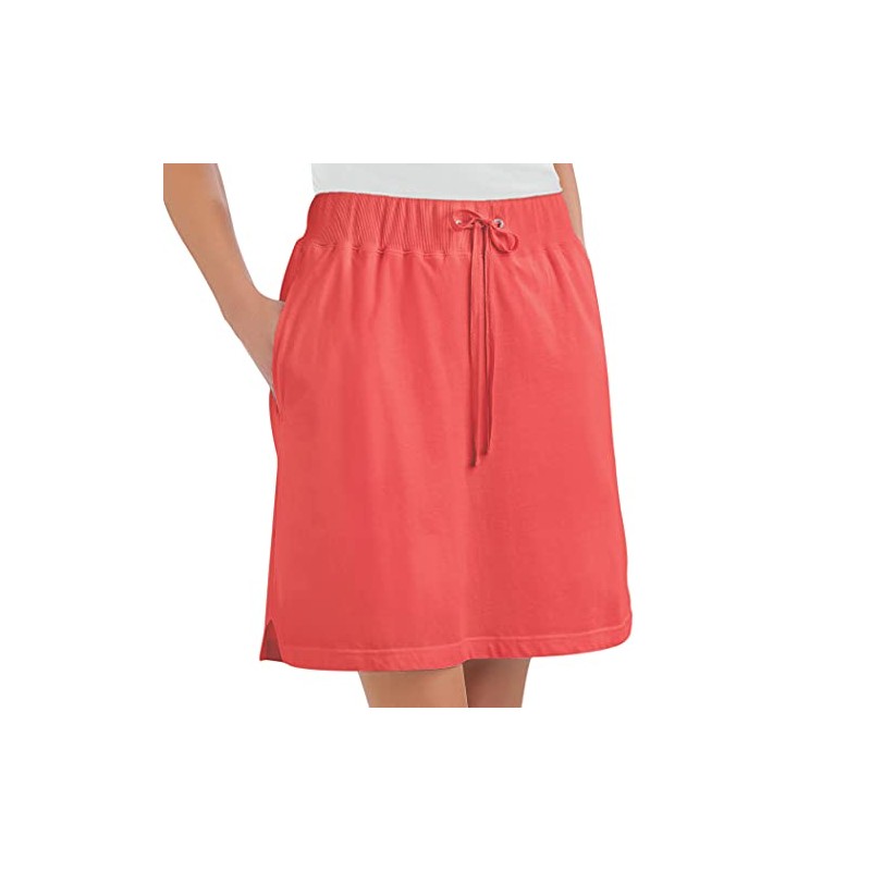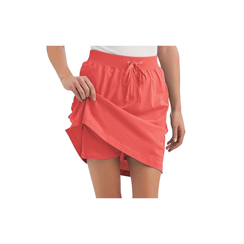- Enjoy the flattering style of a skirt with the comfort of wearing shorts. Pull-on skort features an elasticized waist with drawstring, while the stretch knit shorts attached underneath offer comfort & modesty