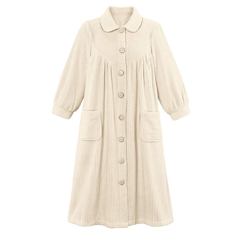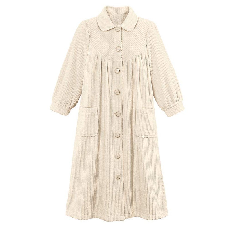Women's Plush Fleece Button Front Robe with Pockets, Collar, Ivory, Medium