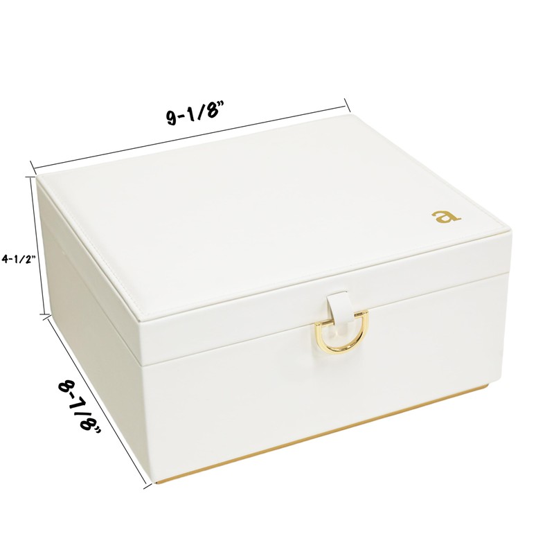 - 【Timeless Elegance with Personalized Charm】This jewelry box stands out with its luxurious white and gold design, featuring a unique gold monogram engraving on the lid for a personalized touch. The built-in mirror enhances its functionality and elegance, making it a centerpiece for any dresser.