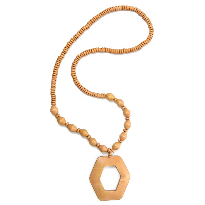 collezione alessandro Regina Long Necklace with Opulent Pendant, Wood, Pearl