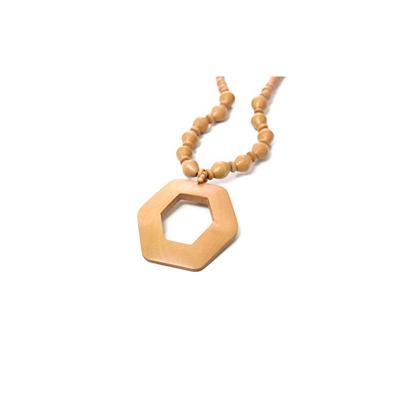 In opulent look. Made of various wooden elements and decorative pendant. With different shaped beads made of wood and lovingly handmade sustainably. Available in grey and natural. Each piece is unique.