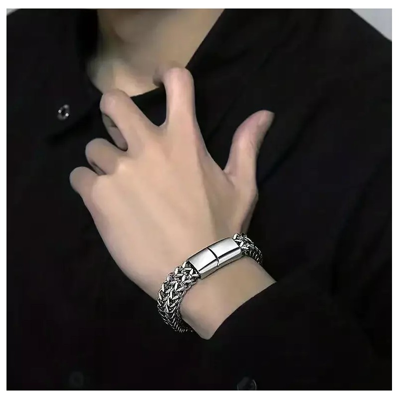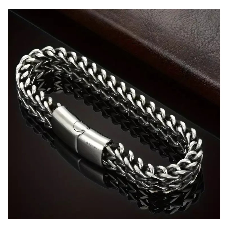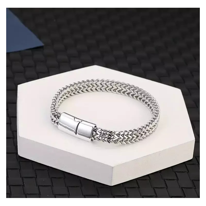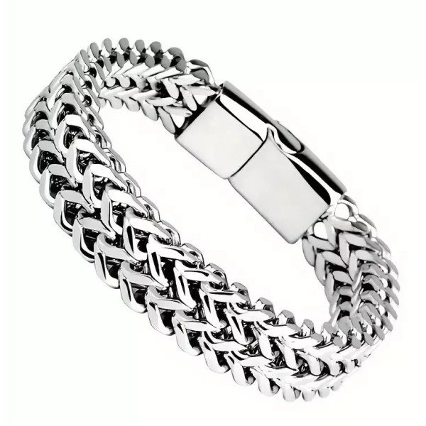 Collezioni&Co. Mens Solid Stainless Steel Braid Double Franco Chevron 8.5" Cable Woven Bracelet