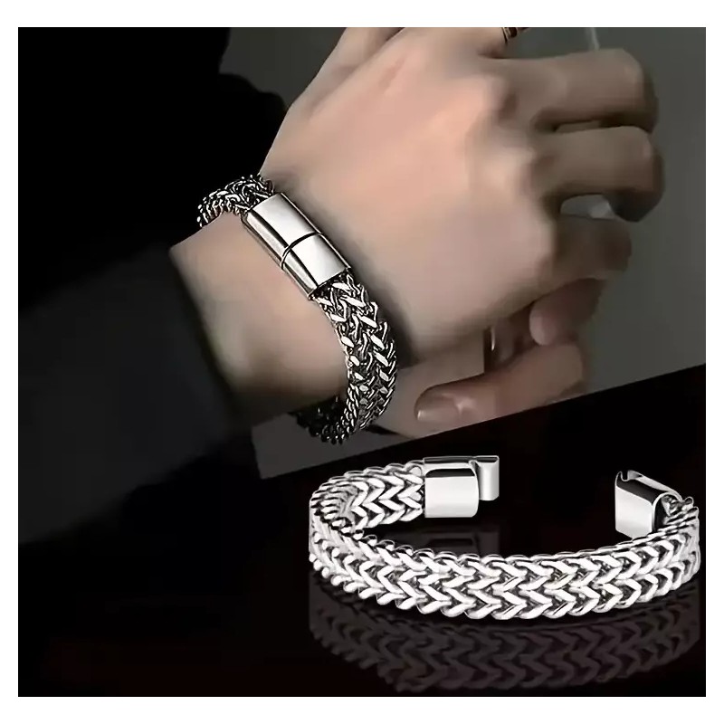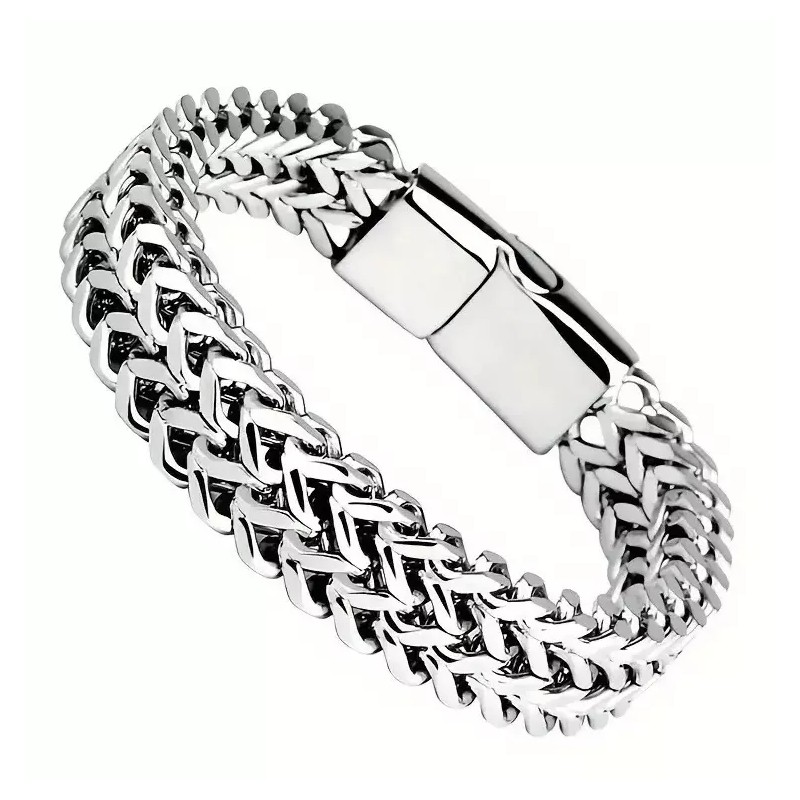 Collezioni&Co. Mens Solid Stainless Steel Braid Double Franco Chevron 8.5" Ca...