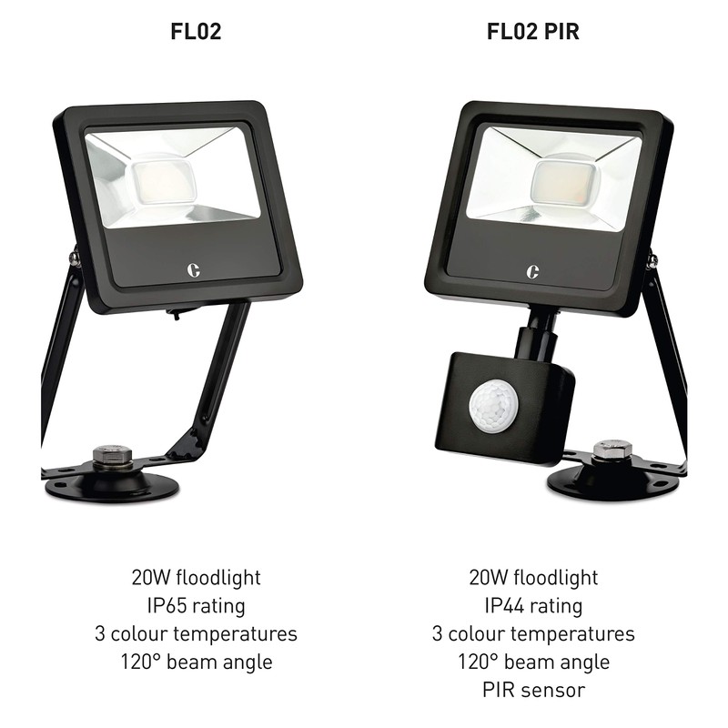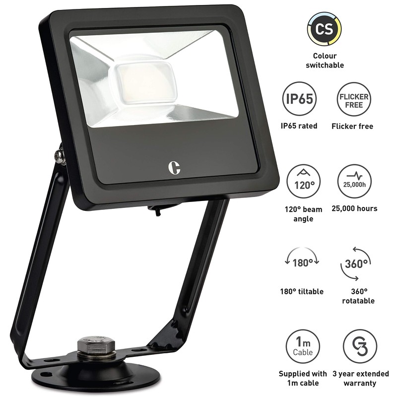 Collingwood FLOODLIGHT Spotlight 20W with or Without PIR - SWITCHABLE 3000K, 4000K, 6500K