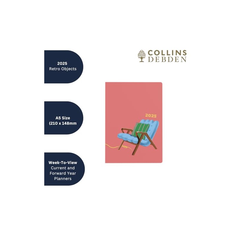 Collins Retro Object by Katie Smith 2025 Planner - A5 Week to View Diary - 1950s Armchair - (E-RO153.50-25) - Stylish Weekly Eco Diary with Recycled Paper