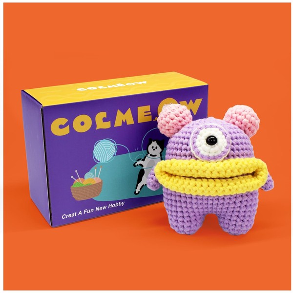 Colmeow Crochet Kit for Beginners, Crochet Starter Kit with Yarn and Hook, Step-by-Step Video Tutorials-Big-Eyed Adorable Purple Monster, Beginner Animal Crochet Kit for Adults Kids