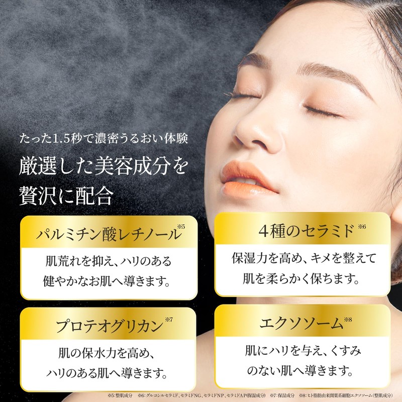 The micro mist of approximately 1/5 of the pores penetrates instantly, leaving your skin moisturized, smooth, and shiny.