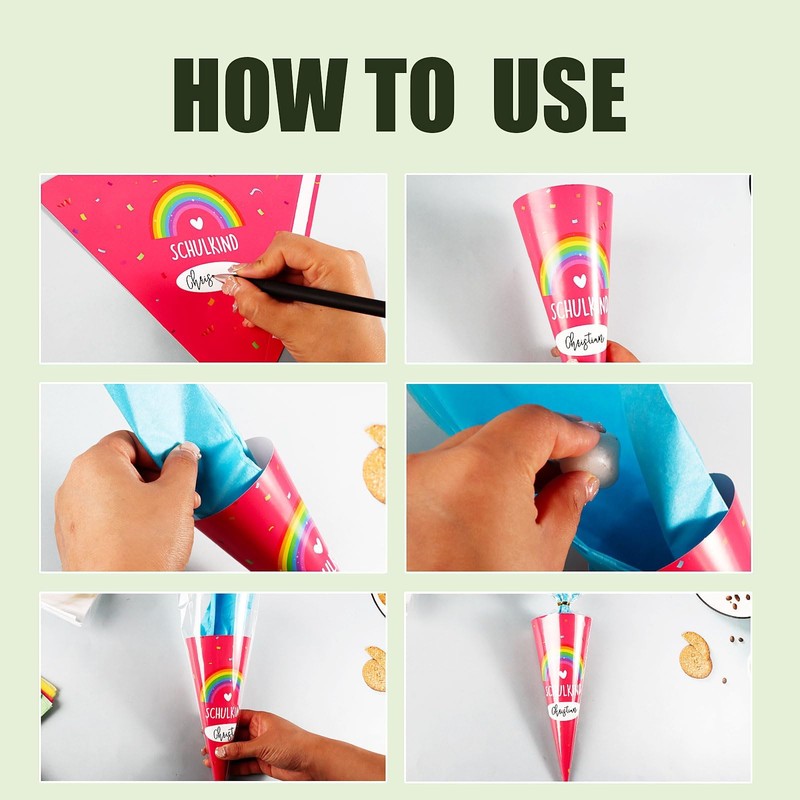 - DIY school cone: Happy school enrolment! You can write the name of your school child DIY on the school cone.