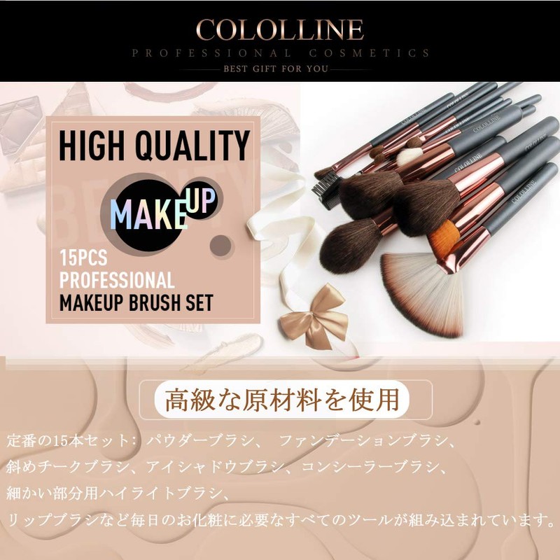 COLOLLINE Soft Wool Makeup Brushes Set of 15 with Cosmetic Pouch (Black)