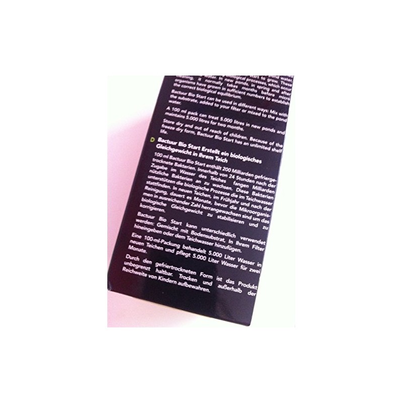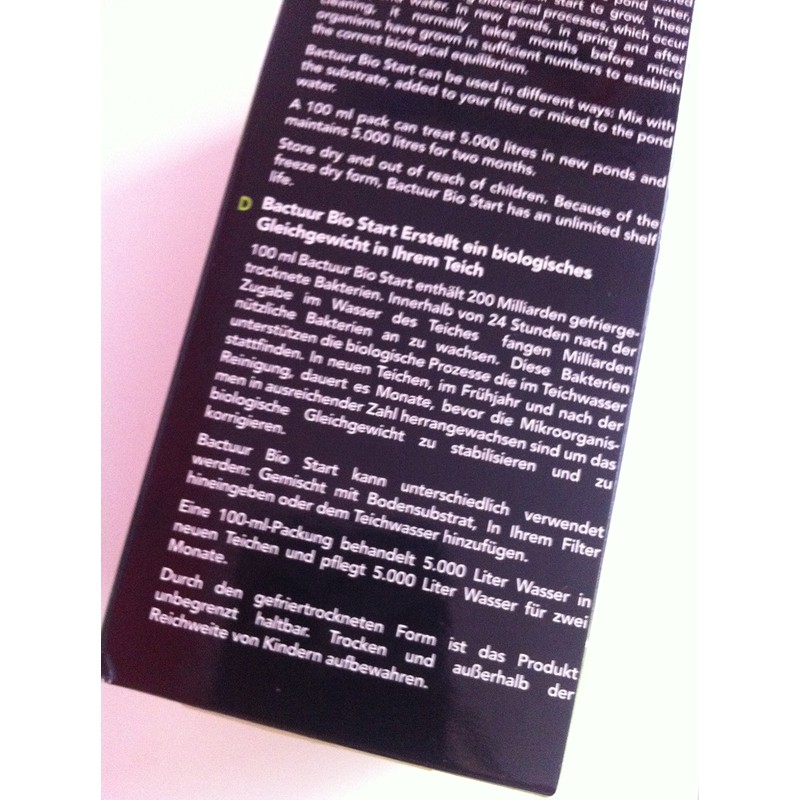 100 ml Bactuur contains 200 billion freeze-dried bacteria. Within 24 hours of being added to the pond water, billions of beneficial bacteria begin to grow. These bacteria support the biological processes in pond water. In new ponds, in spring and after cleaning, it takes months before the micro-organisms have grown in sufficient quantities to stabilise the biological balance.
