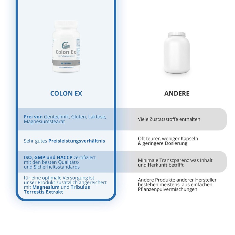Colon Ex, 90 Capsules Premium Quality with Psyllium Husks and Magnesium, 100 Percent Natural and Gentle, 1 Pack (1 x 81 g)