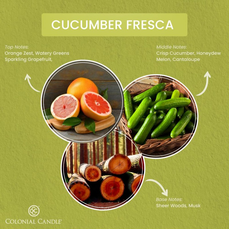 - REFRESH | Exhilarate your senses with Cucumber Melon. Notes of citrus zest and crisp cucumber are paired with sheer woods to add a warm finish to the revitalizing scent.