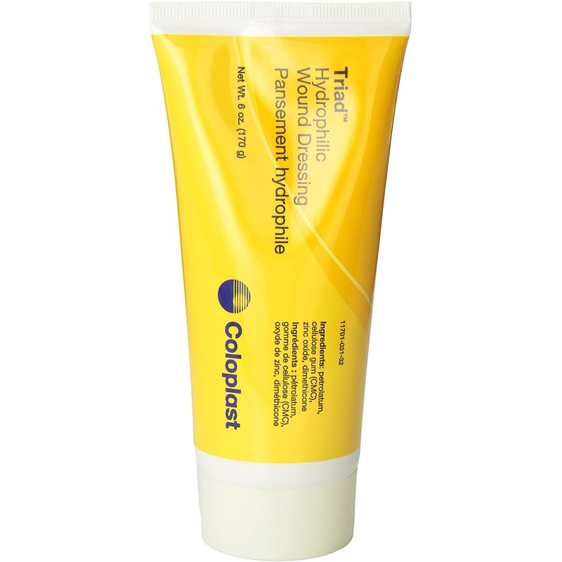 Coloplast Triad Hydrophilic Wound Dressing Paste helps maintain an optimal wound healing environment to facilitate natural autolytic debridement. Ideal alternative for difficult-to-dress areas and varying wound etiologies. - Zinc oxide-based hydrophilic paste gently adheres to moist wound beds. Autolytic action loosens dried eschar to aid in its removal process. Sterile, Non-adhesive dressing gently covers moist, weeping wounds and spreads evenly over entire wound area.