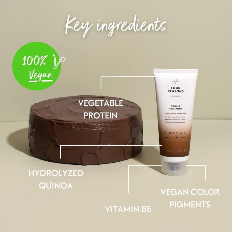 Four Reasons Color Mask - Chocolate - (27 Colors) Toning Treatment, Color Depositing Conditioner, Tone & Enhance Color-Treated Hair - Semi Permanent Hair Dye, Vegan and Cruelty-Free, 6.76 fl oz