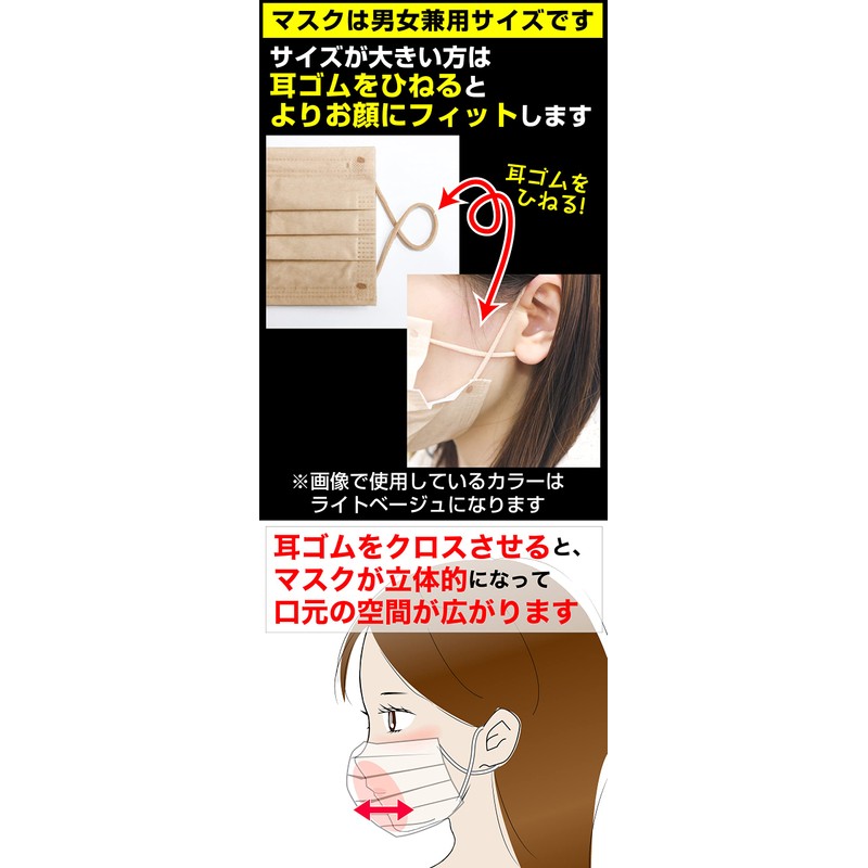 Not only the mask itself, but also the rubber ears are also the same color for a uniform and fashionable look.