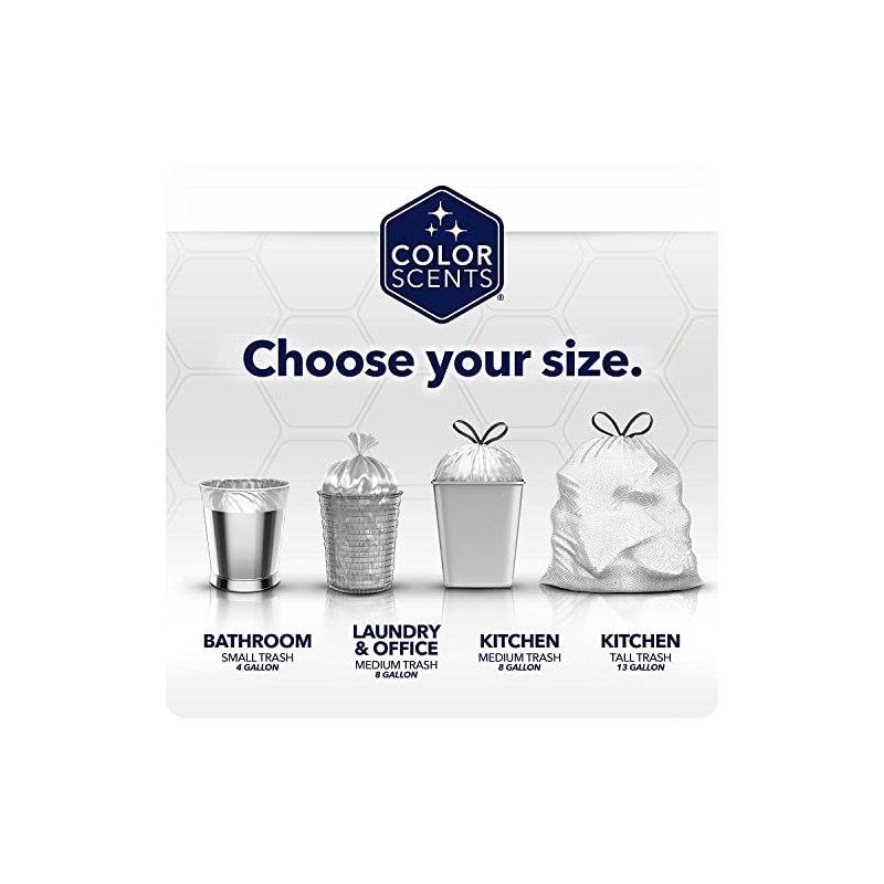 - SCENTED TRASH BAGS: Color Scents is your secret tool, these scented garbage bags deliver subtle bursts of scent to help maintain an inviting smell while helping to combat trash odors.